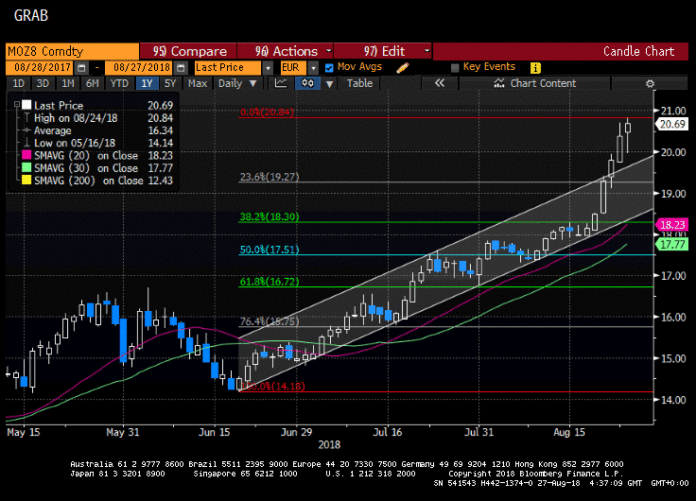 27 August, the benchmark carbon contract hit 21.09 euro, a level not seen since October 2008. The carbon price rallied almost 20% in August and almost 160% since 31 December 2017.