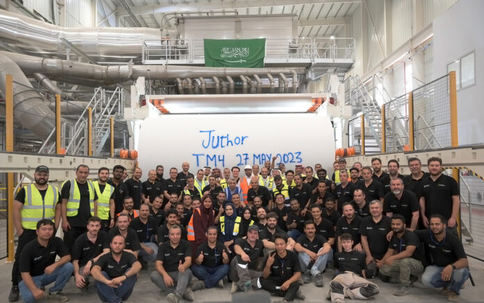 Description: Juthor Paper Manufacturing, part of Mepco Group, has started up a complete tissue line including an Ahead 2.2L tissue machine and two Optima slitter rewinders supplied by Toscotec on a turnkey basis at its new tissue mill in Kaec, Saudi Arabia. With this start up, Mepco, a leading containerboard manufacturer, effectively enters the tissue market.