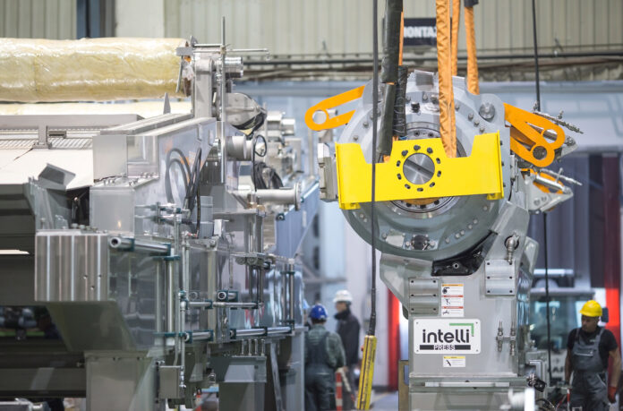 PM2, 5,300 mm @reel and an annual capacity of 160,000 tons, produces single-layer wood-free graphic paper with a grammage range from 60 to 170 gsm. The scope of supply will cover an entire new framework, including press roll swing arms, savealls, platforms, mechanical drives as well as assembly and commissioning supervision service.