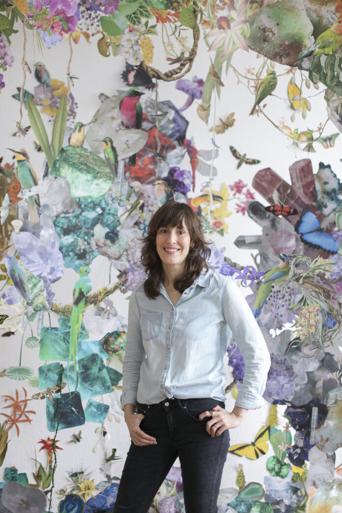 To achieve all of these goals, she works with thousand hand-cut images of flora and fauna to create immersive installations evoking threats to biodiversity in our planet.