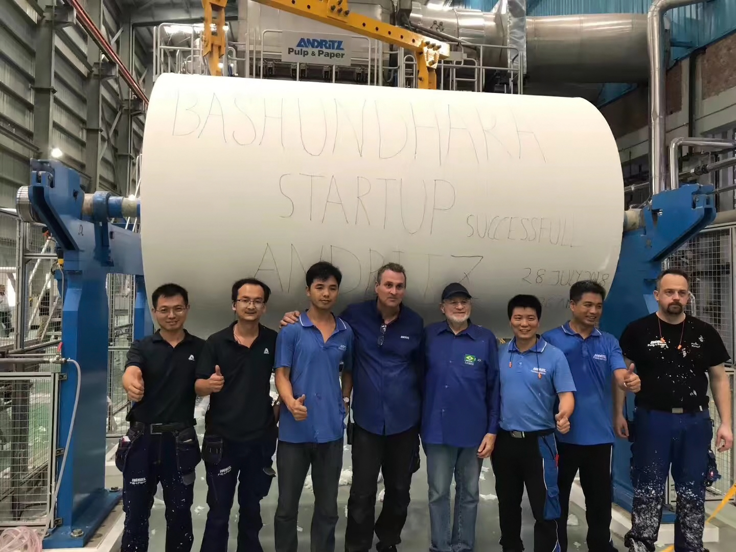 Description: The Andritz tissue machine – with a design speed of 2,100 m/min and a paper width of 2.85 m – produces tissue for high-quality facial wipes, toilet paper, and napkins. The 16 ft. PrimeDry Steel Yankee is made entirely of steel, thus enabling high and efficient drying performance, and was manufactured at the Andritz Steel Yankee Business Center in Foshan, China, which offers customers in Asia state-of-the-art manufacturing, local field service, and comprehensive quality management. For the company, it is the first high-speed tissue machine to be installed in Bangladesh.