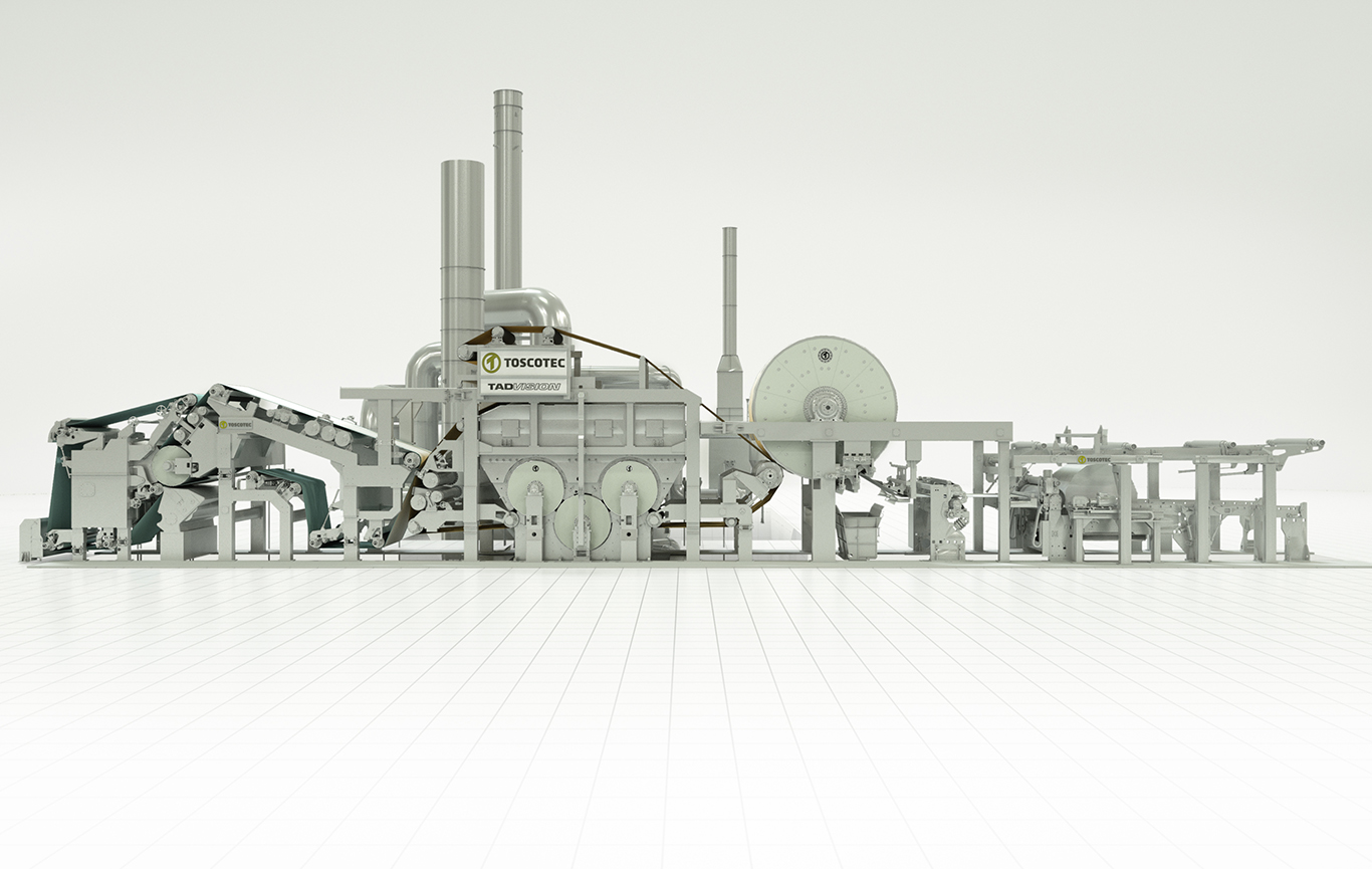 Description: Toscotec supplied The Tadvision machine. Designed for extra-premium product quality and superior energy efficiency, the TAD machine is equipped with a Steel Yankee Dryer, a successful pioneering innovation on this technology.